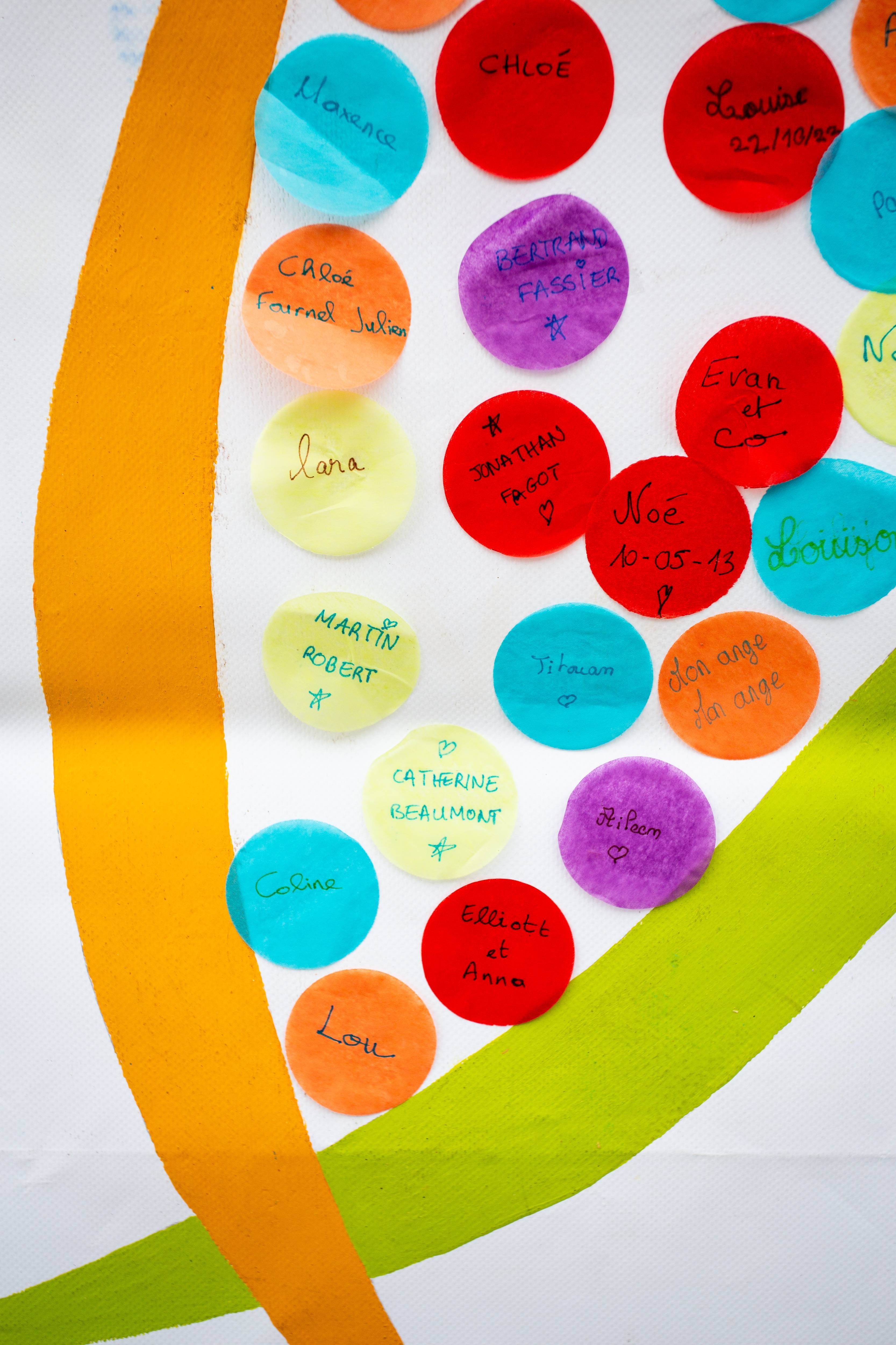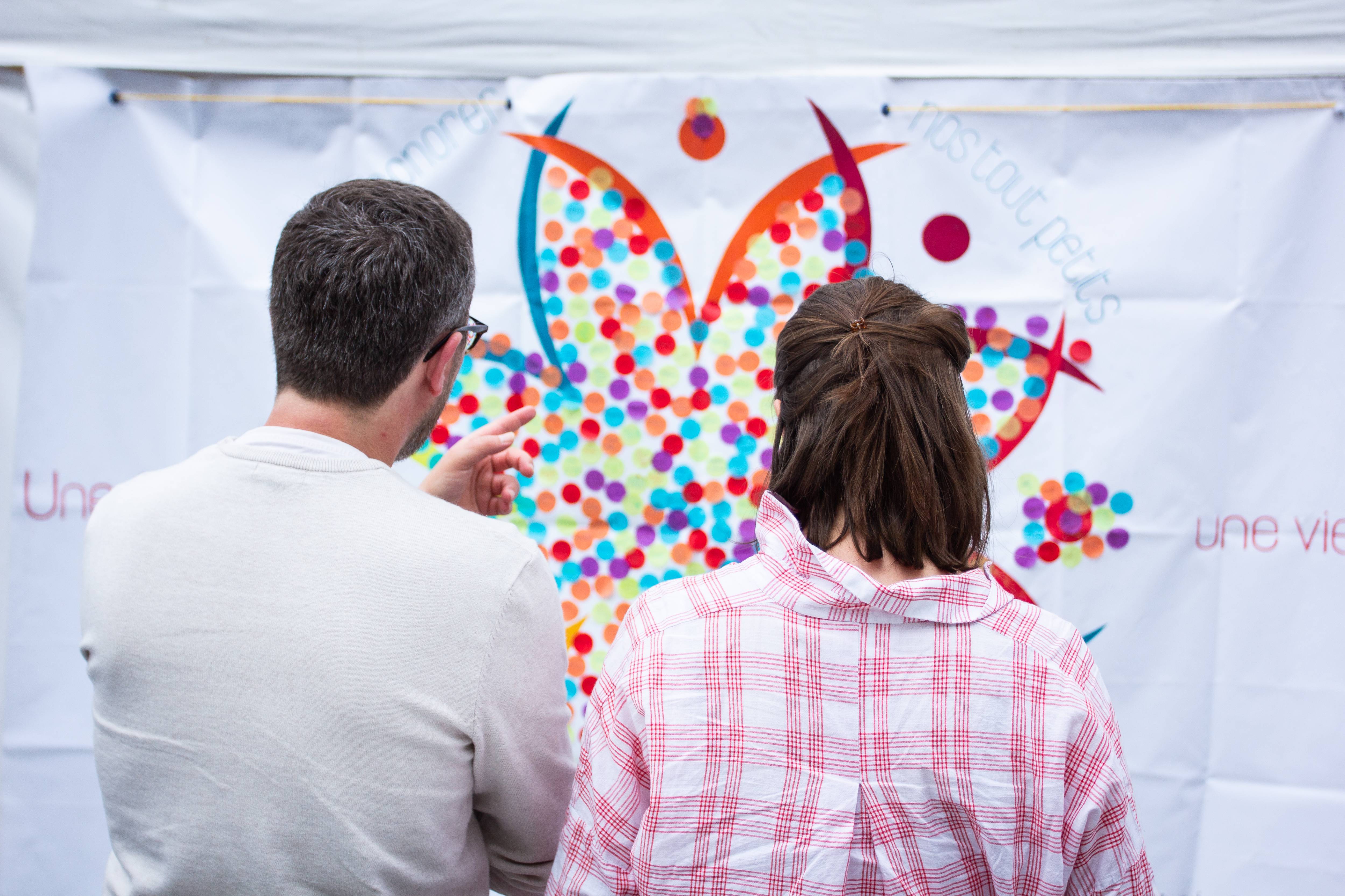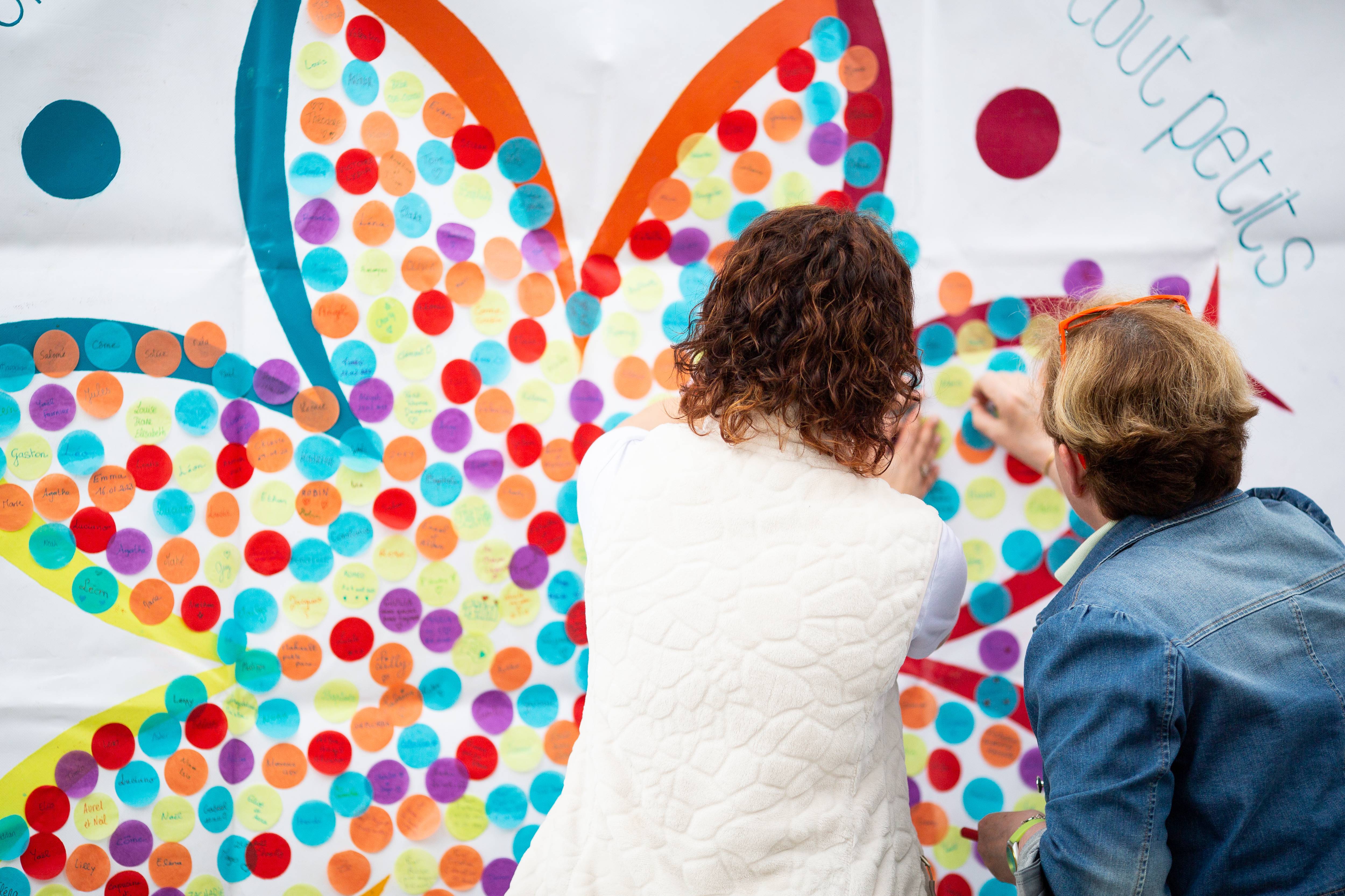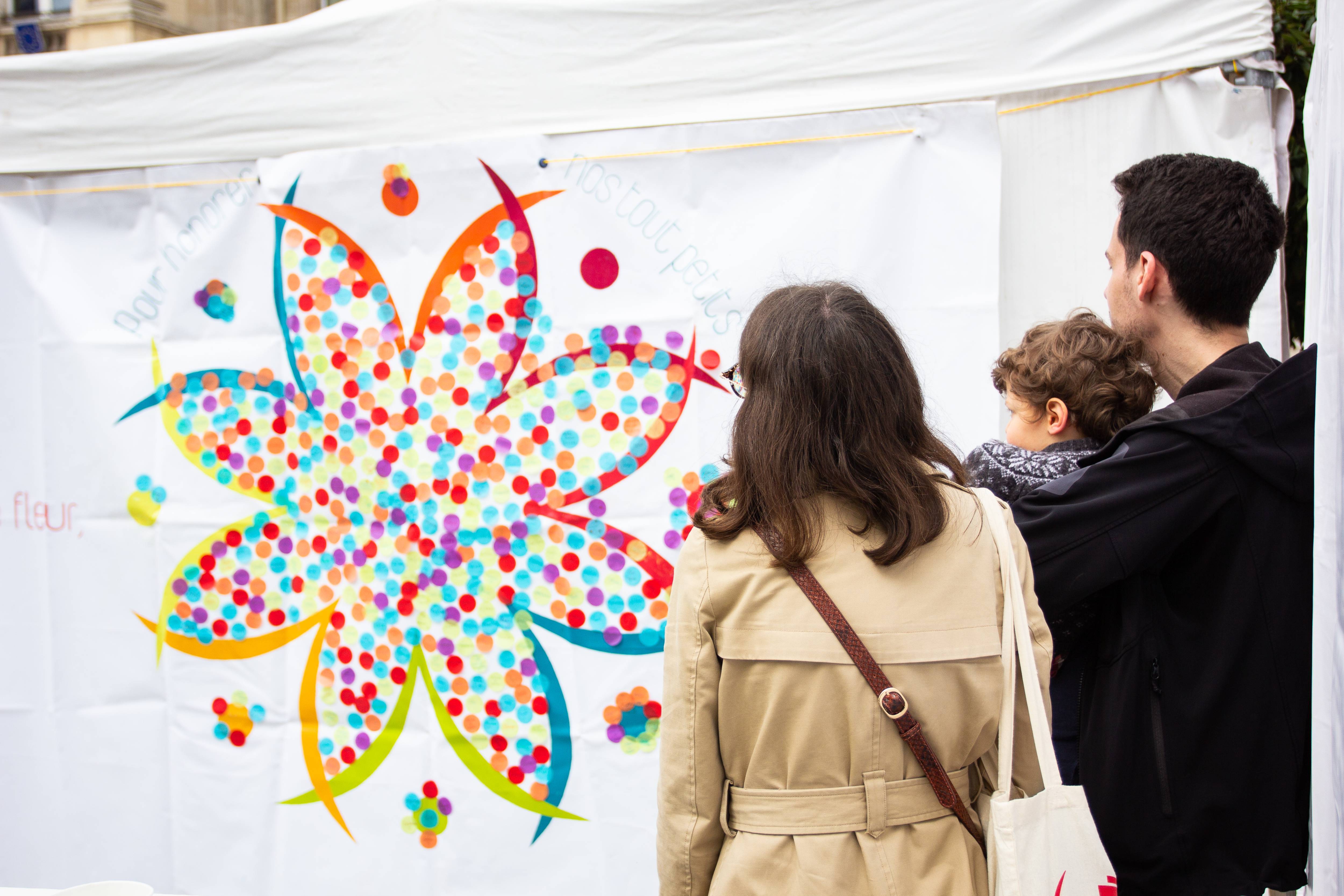Parents, grands-parents, frères, sœurs ou amis viennent déposer une fleur pour honorer l’existence de ceux dont la courte vie a laissé des traces. Un bouquet immense et coloré se crée au fil de la journée. Ateliers artistiques, groupes de paroles, panneau de prénoms, films, spectacles… un mouvement de création dans un cadre convivial et bienveillant permet de se sentir moins seul et d’avancer, à son rythme, sur son chemin de deuil.