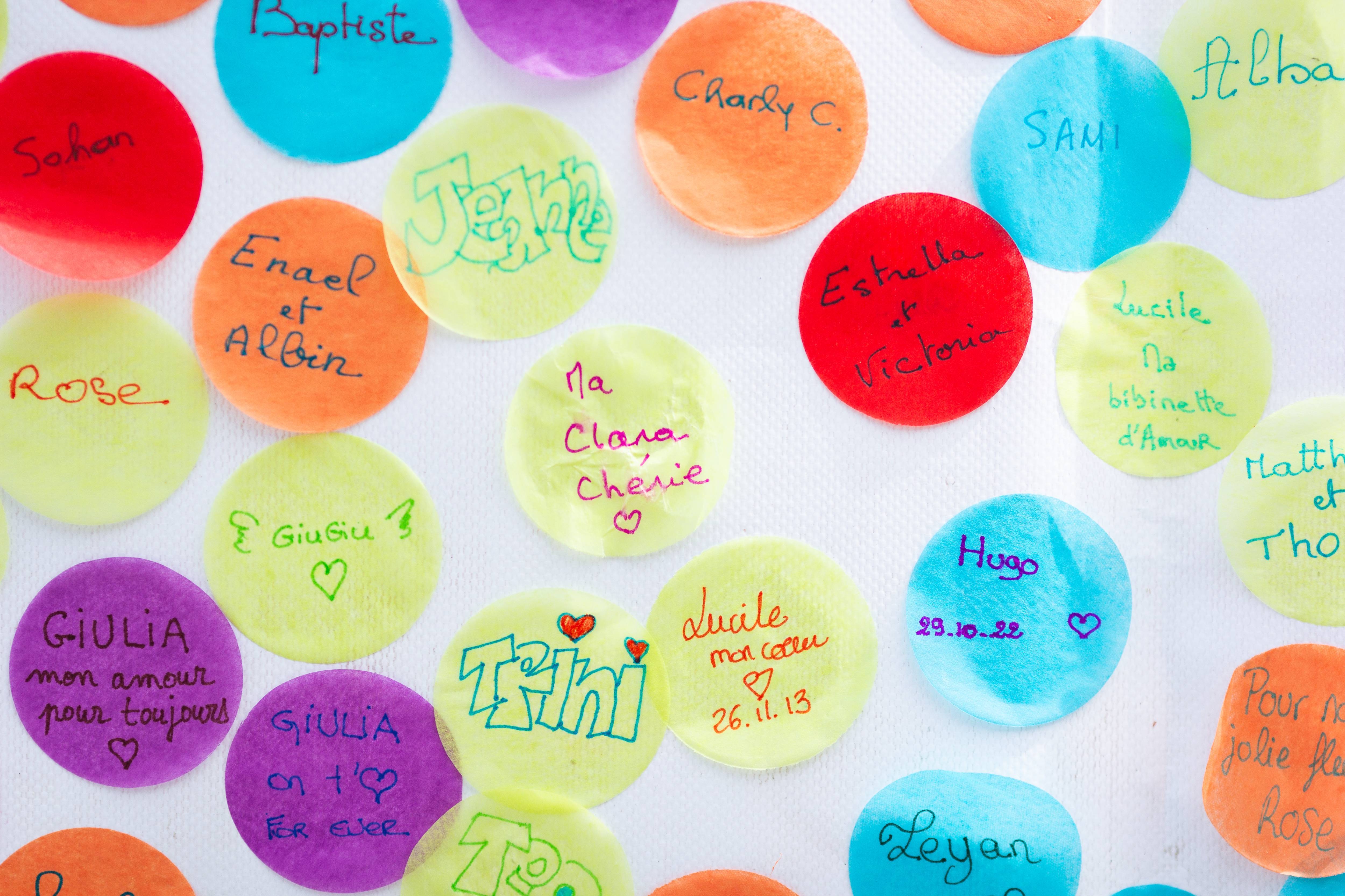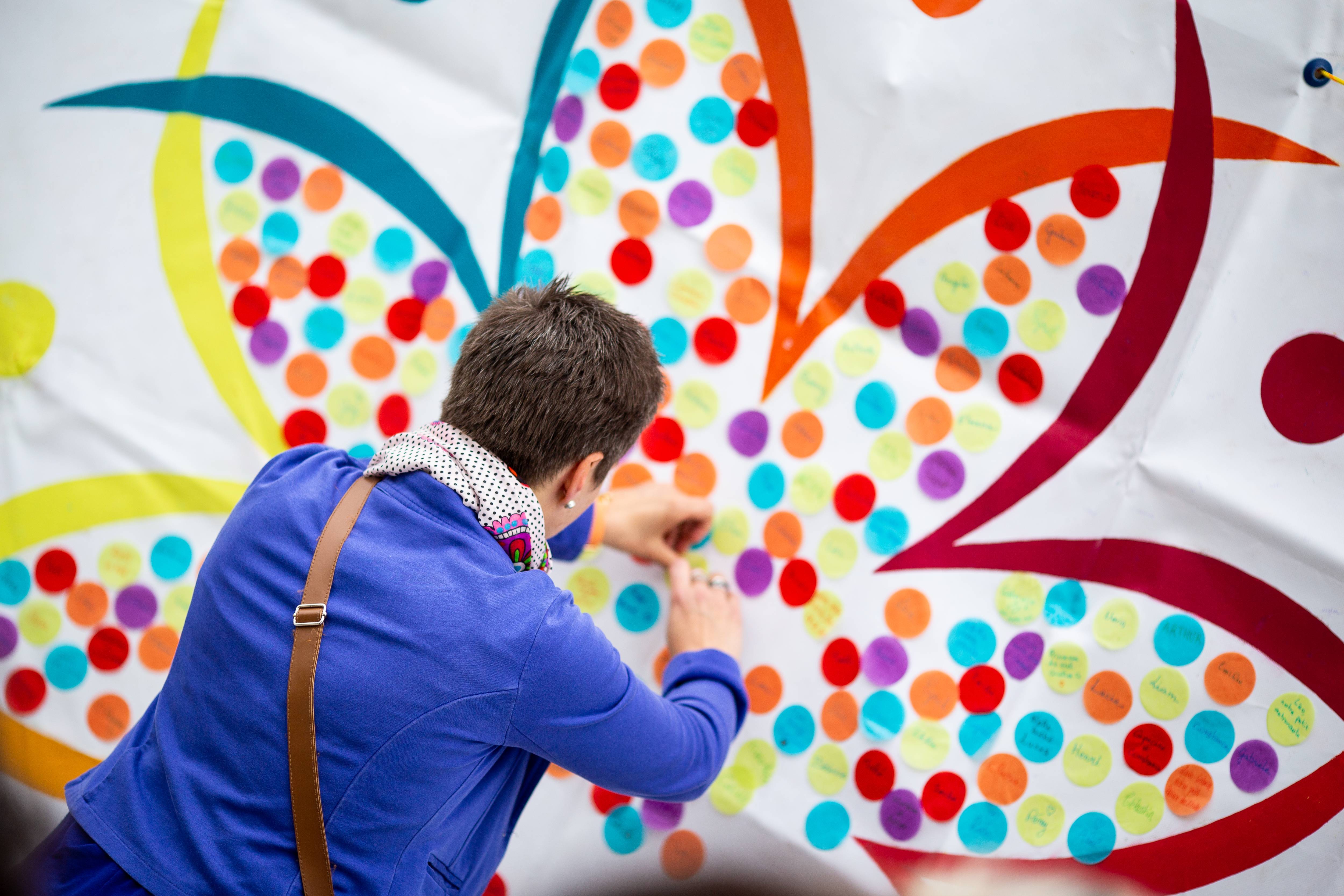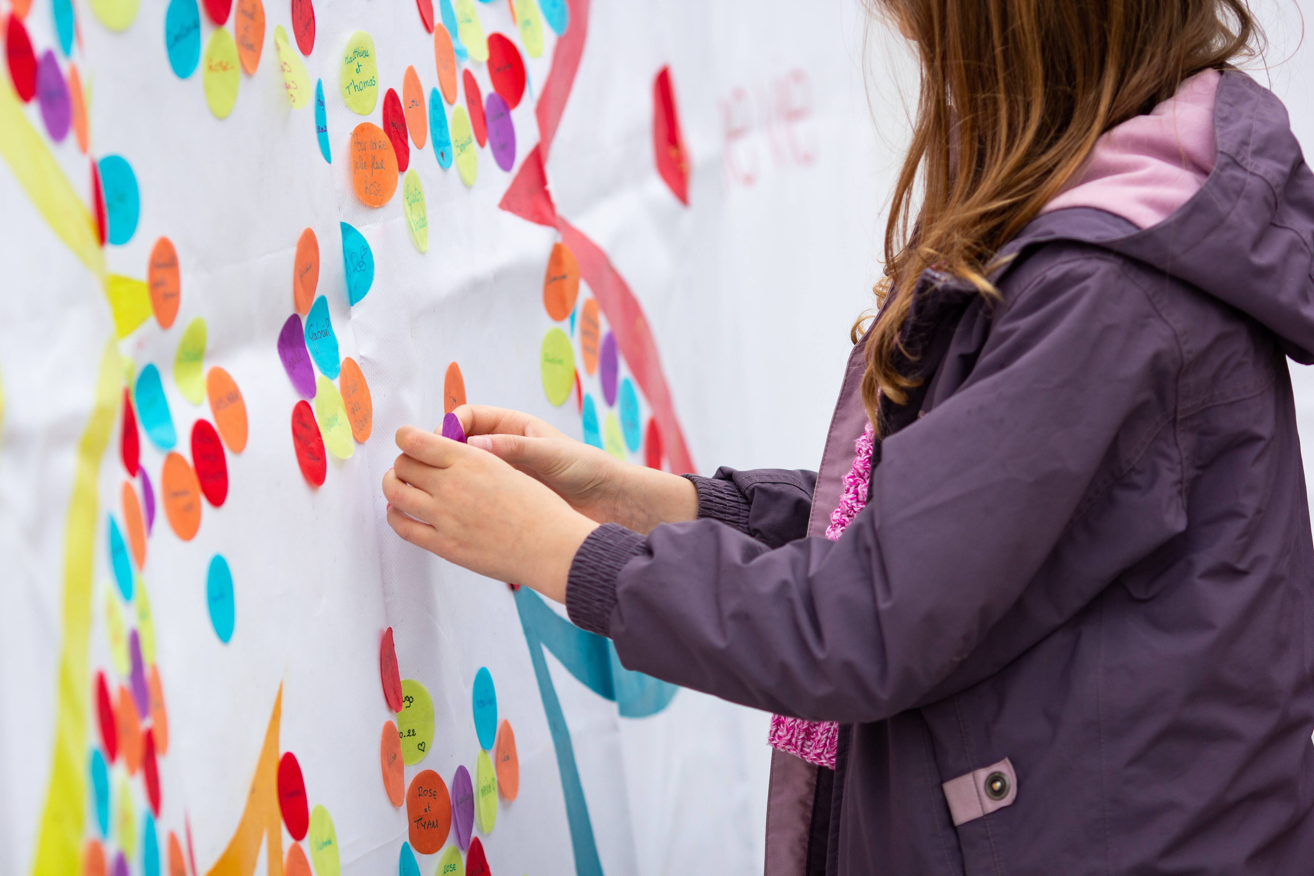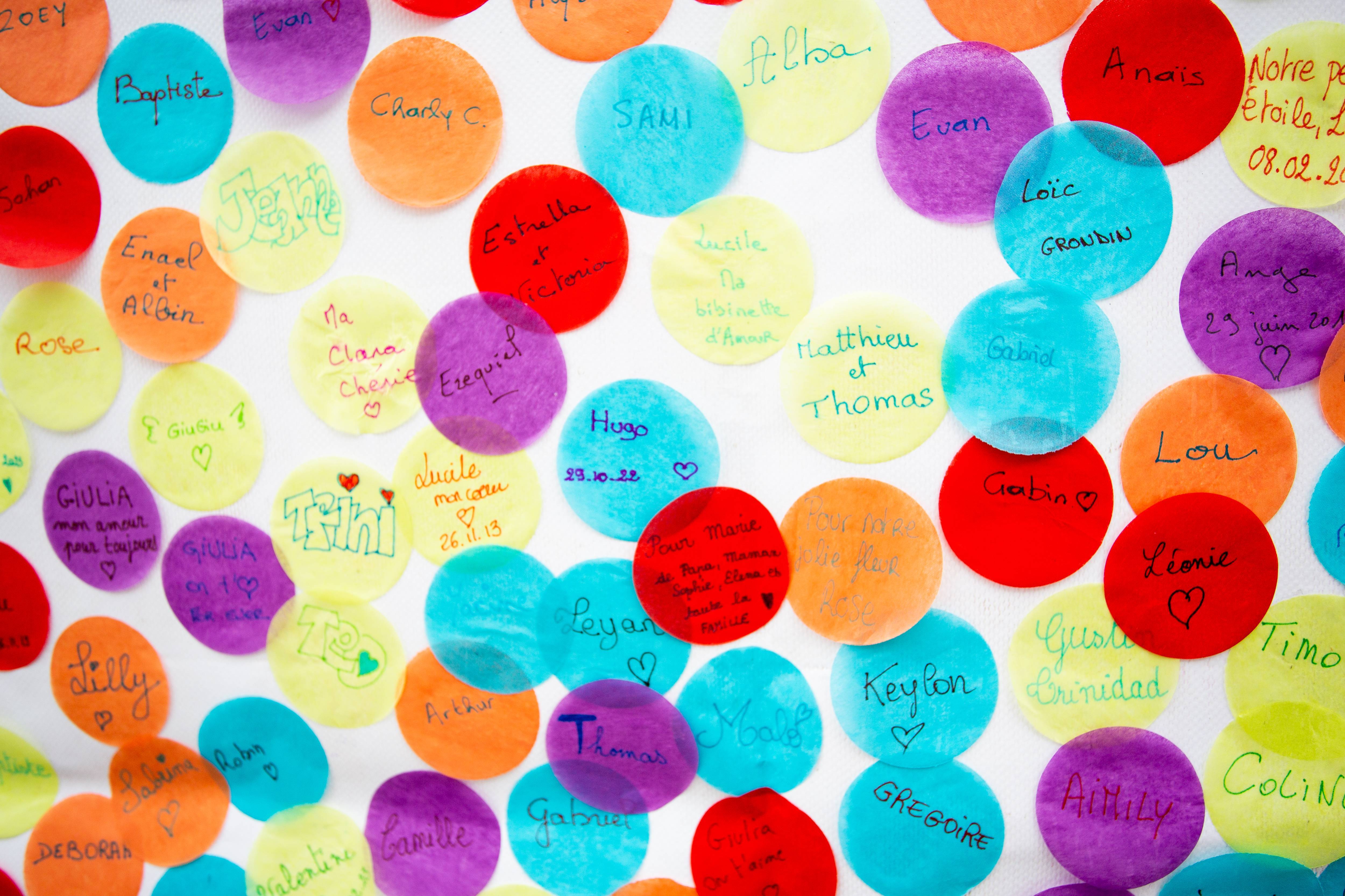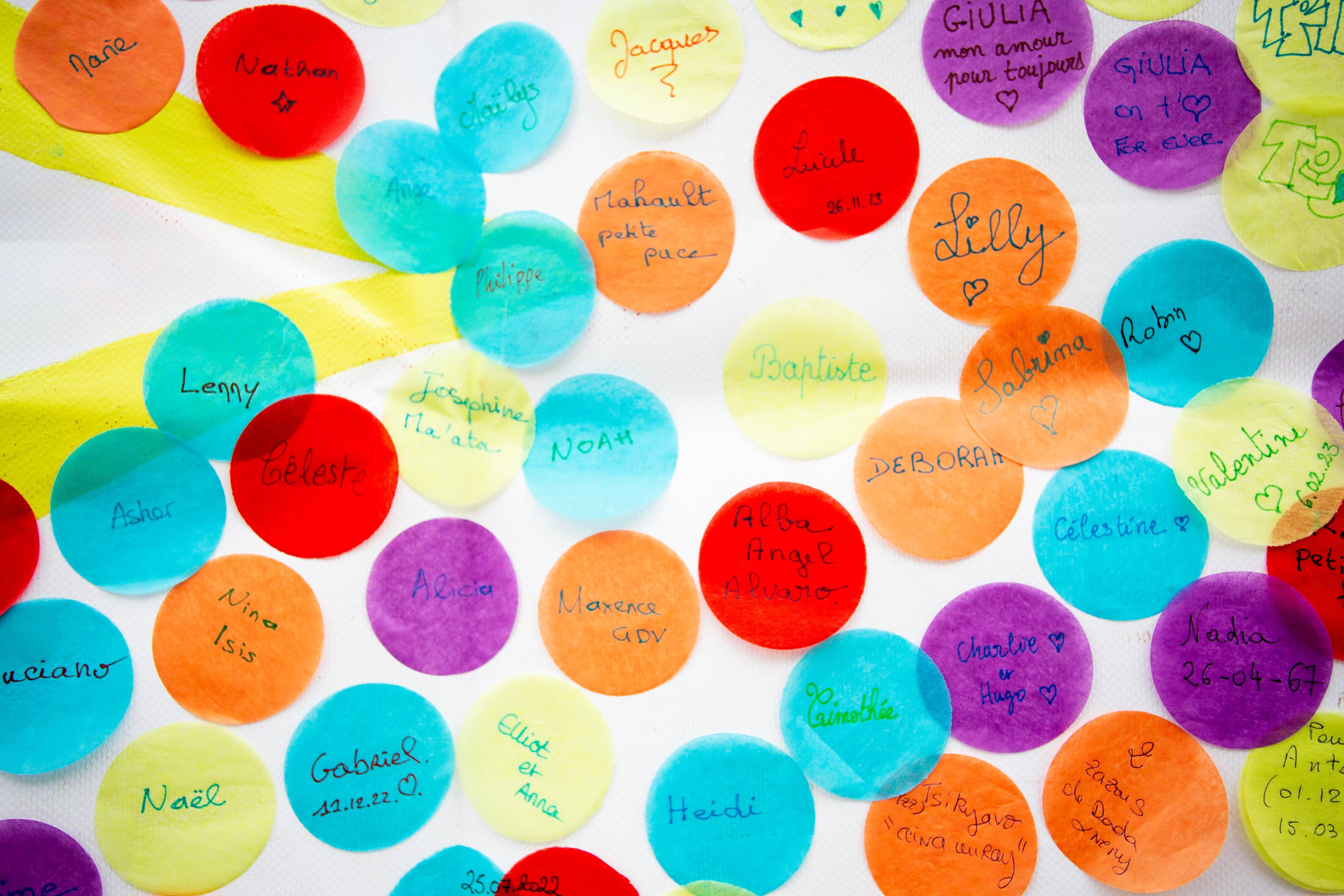 Parents, grands-parents, frères, sœurs ou amis viennent déposer une fleur pour honorer l’existence de ceux dont la courte vie a laissé des traces. Un bouquet immense et coloré se crée au fil de la journée. Ateliers artistiques, groupes de paroles, panneau de prénoms, films, spectacles… un mouvement de création dans un cadre convivial et bienveillant permet de se sentir moins seul et d’avancer, à son rythme, sur son chemin de deuil.
