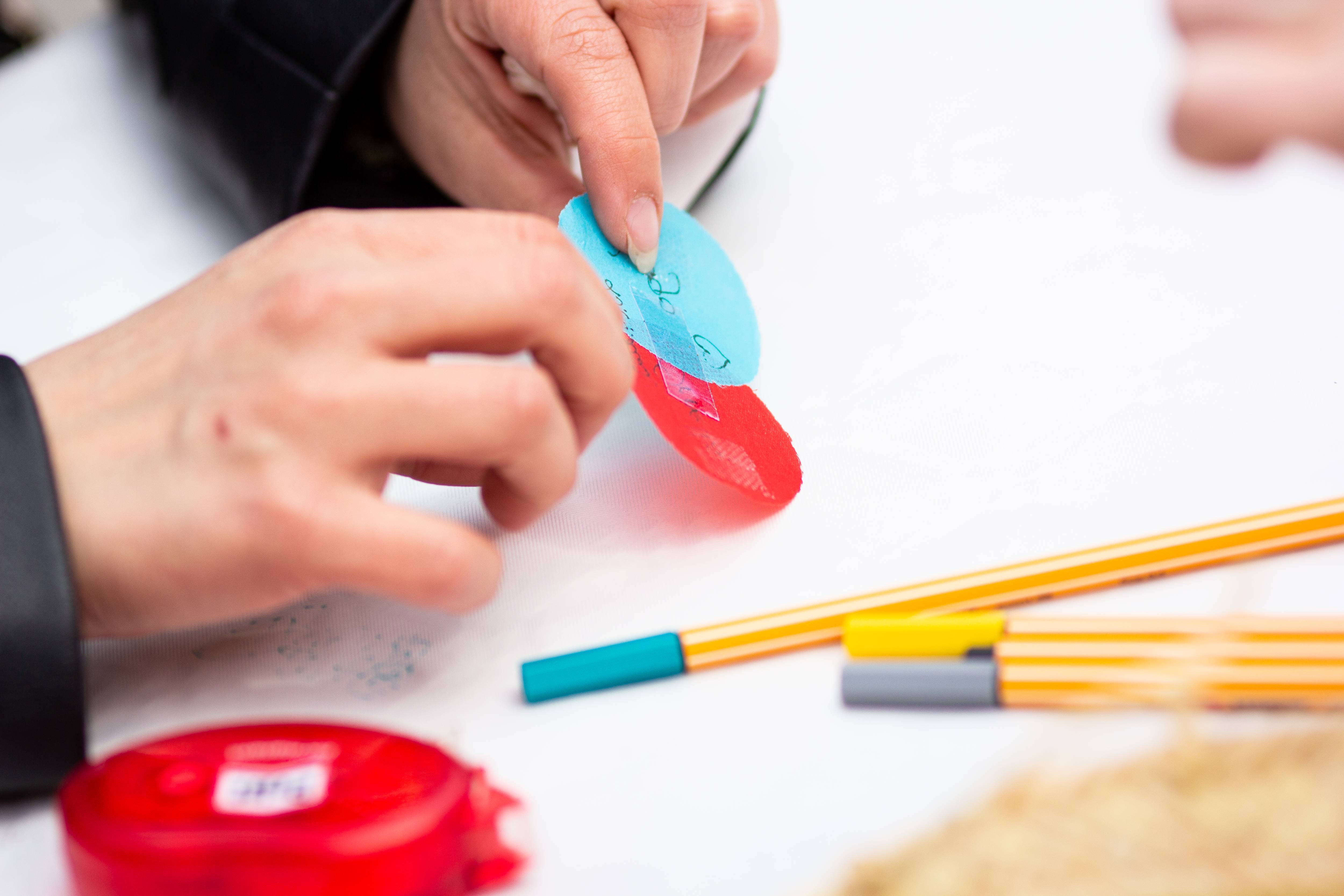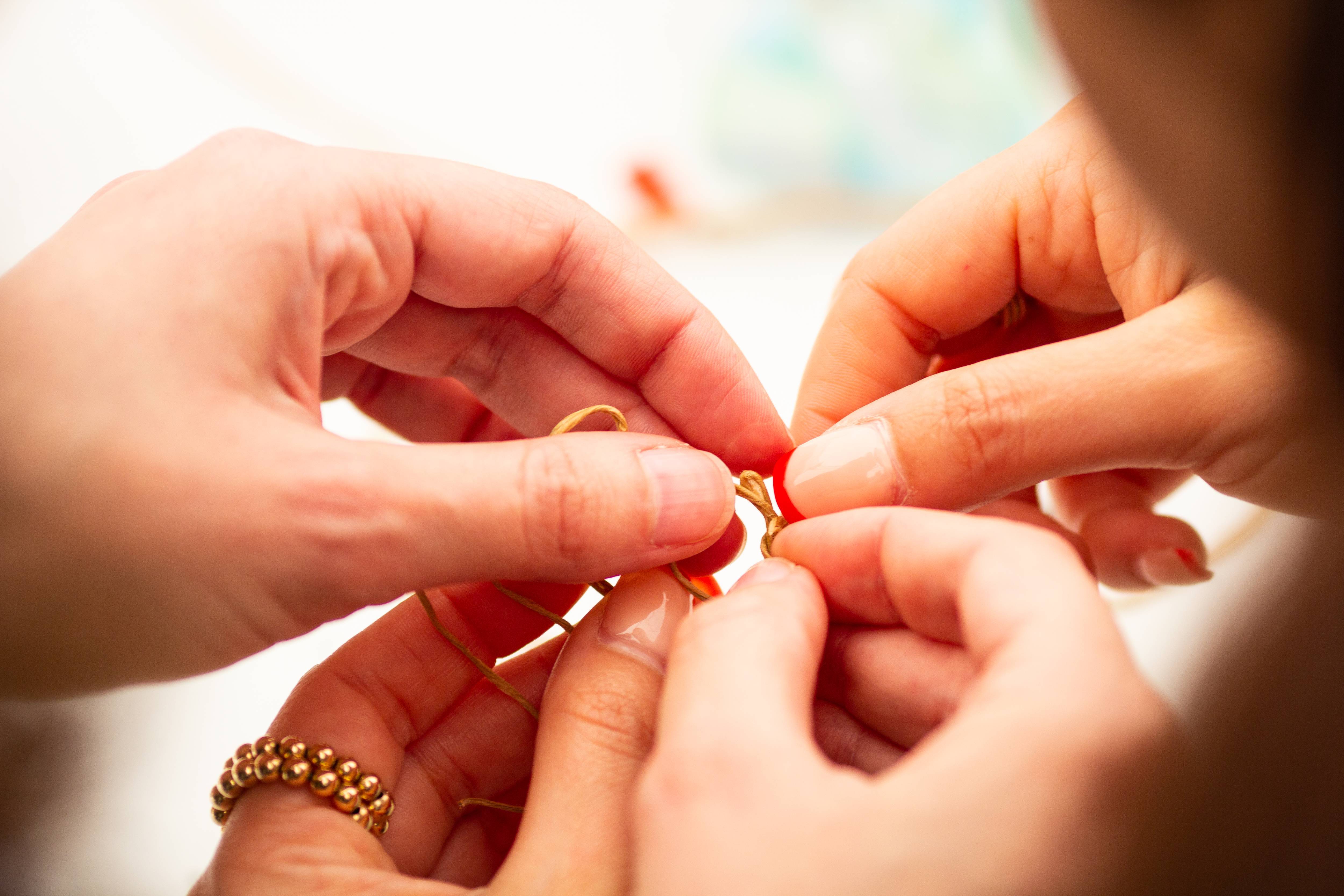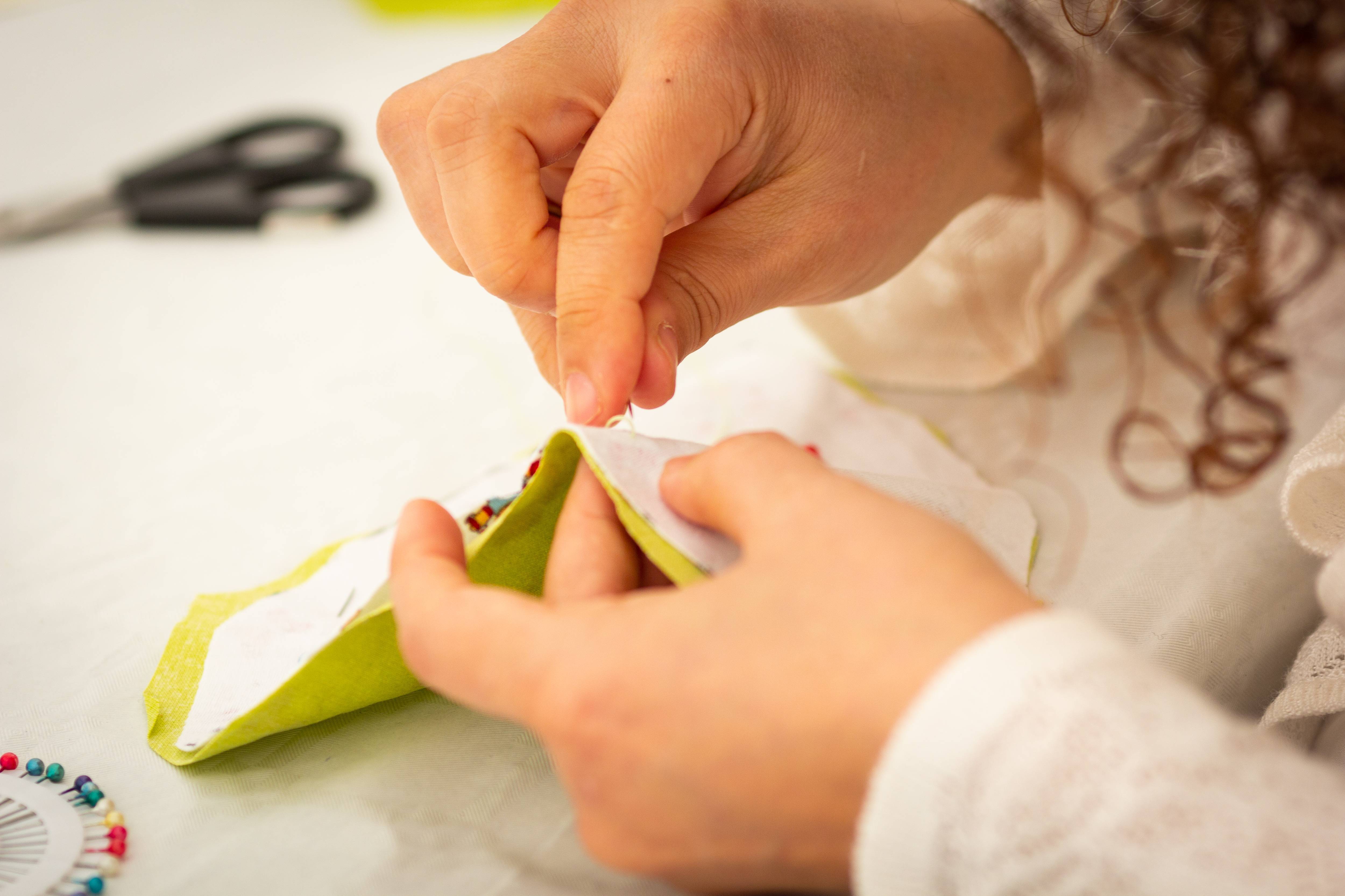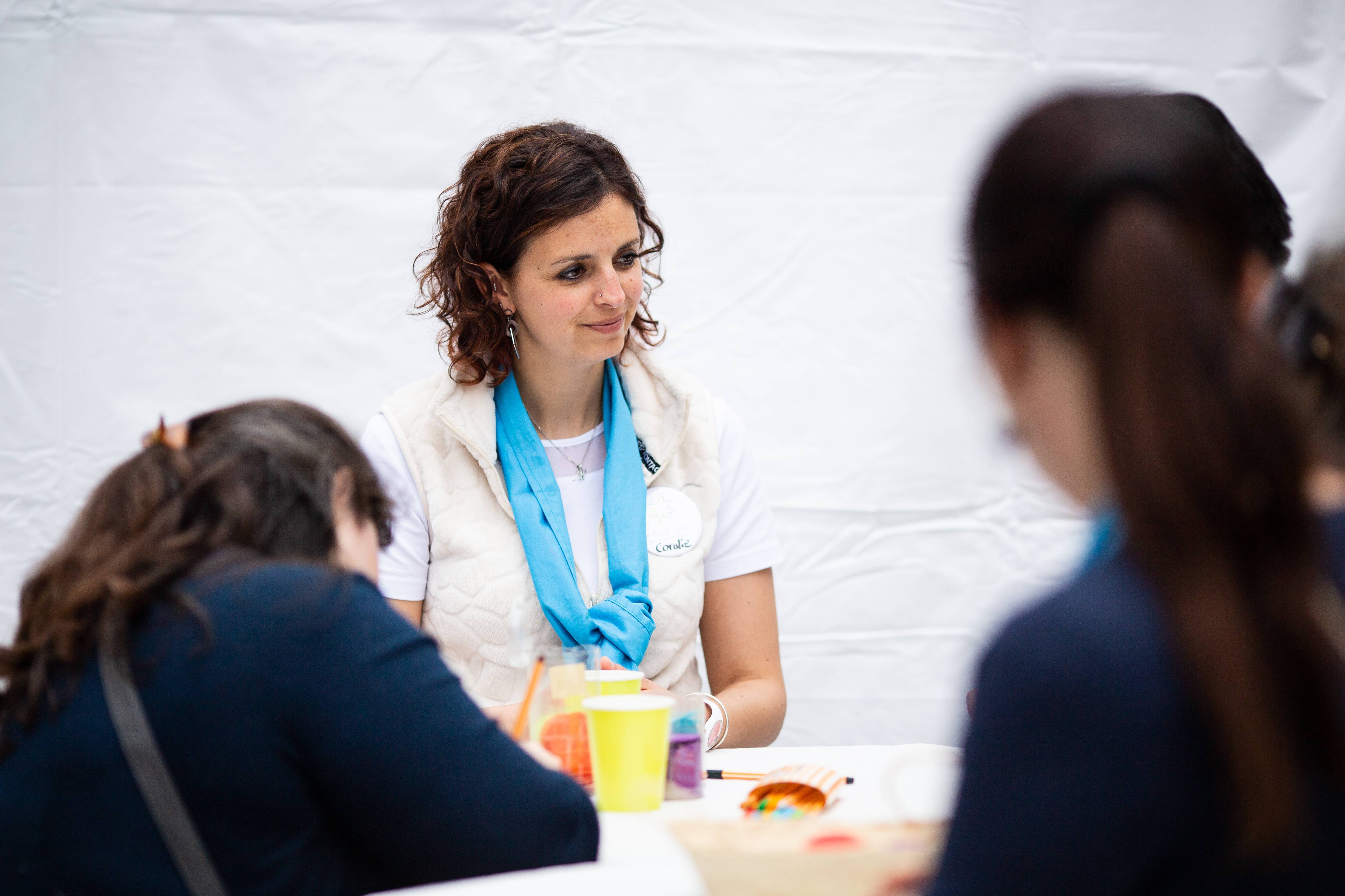 Mon épouse est à mes côtés et parle avec une femme blonde qui l’écoute avec beaucoup de douceur et de bienveillance. Je n’entends rien, je ne comprends rien. Qu’est-ce que je fais là ? Mais je me sens bien, à ma place en cousant un cœur !