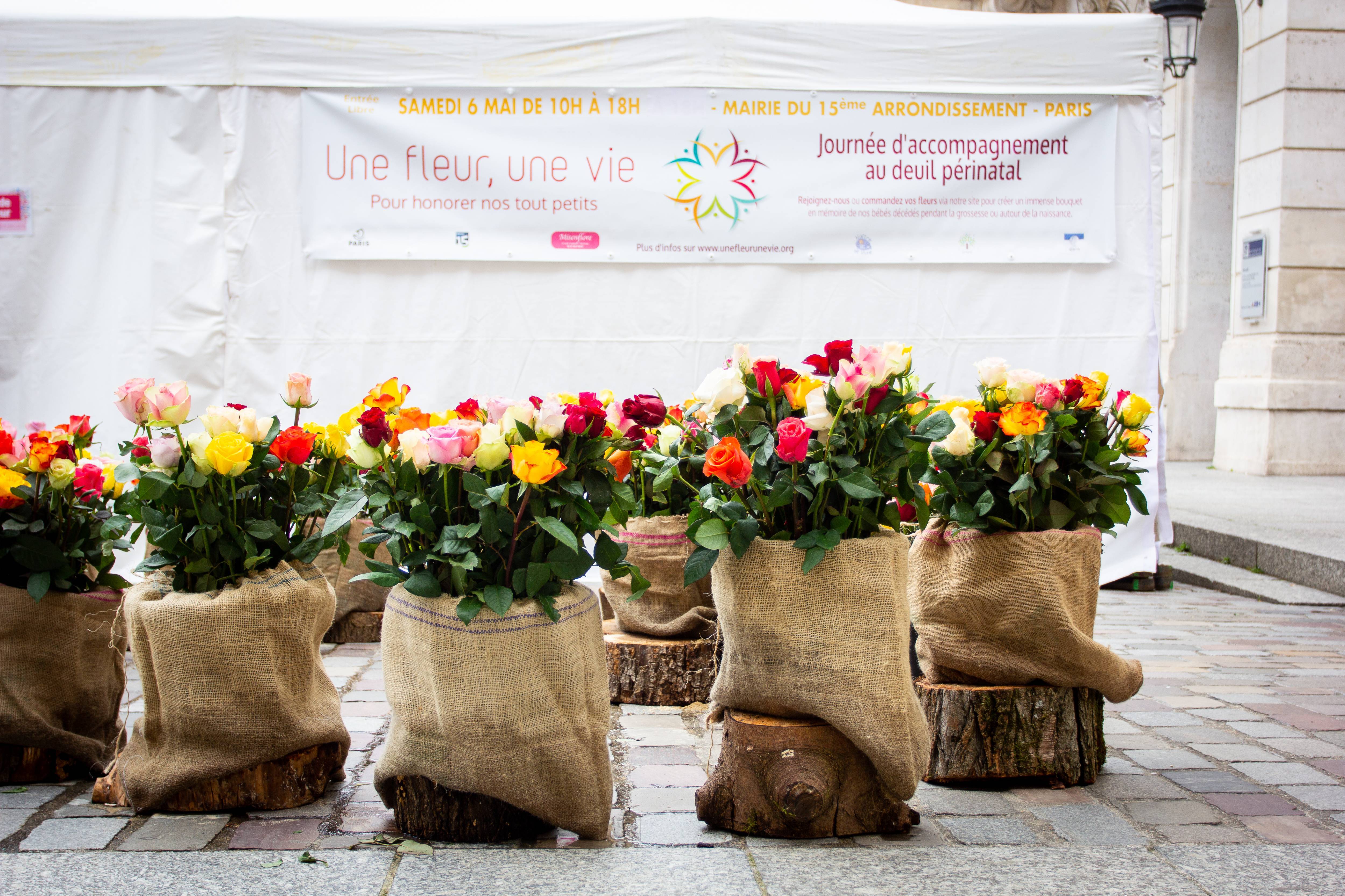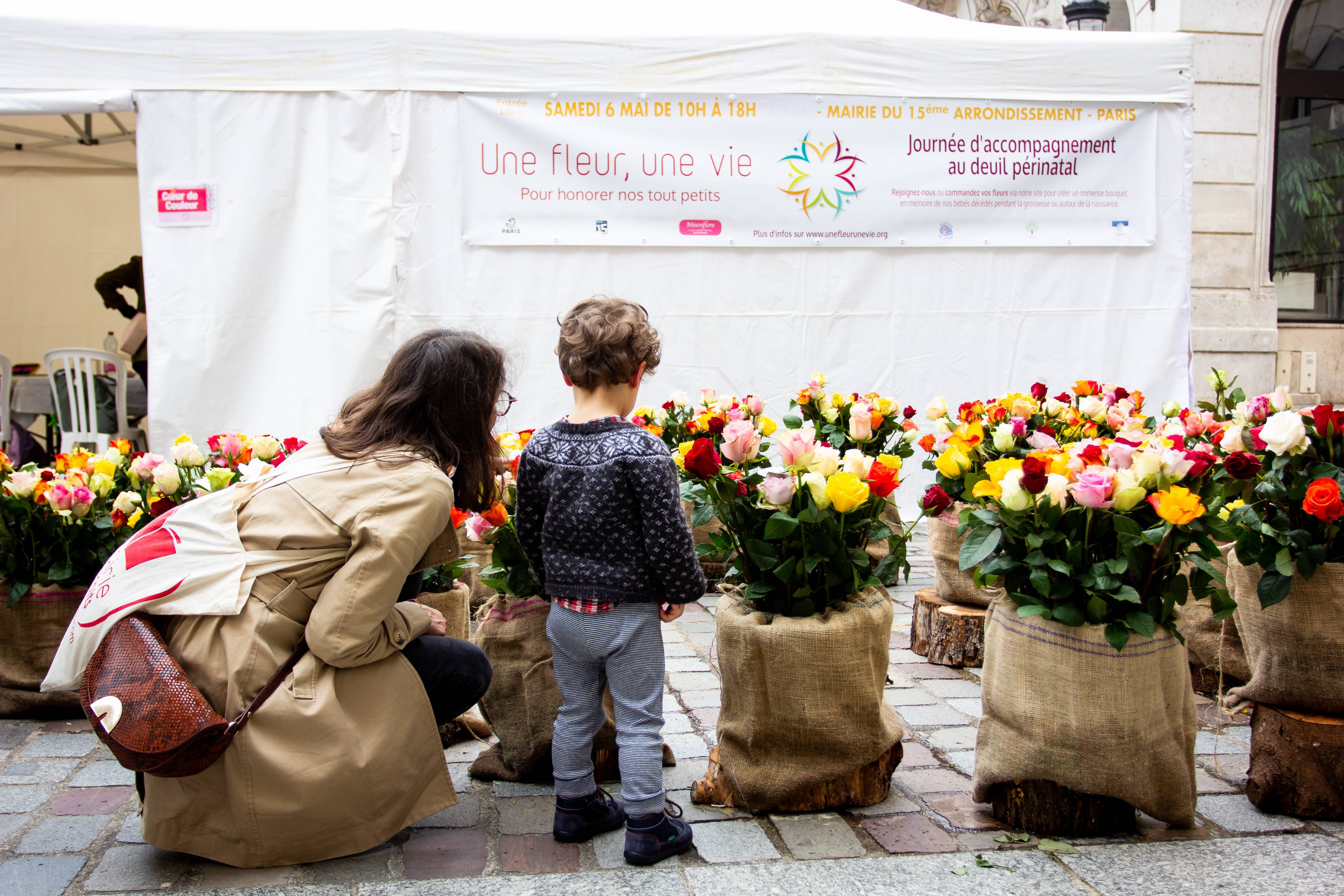 « Une fleur, une vie » est un évènement public et artistique destiné aux personnes touchées de près ou de loin par la perte d’un tout-petit pendant la grossesse ou autour de la naissance. Il a lieu un samedi du mois de mai chaque année depuis 2013, à Paris.